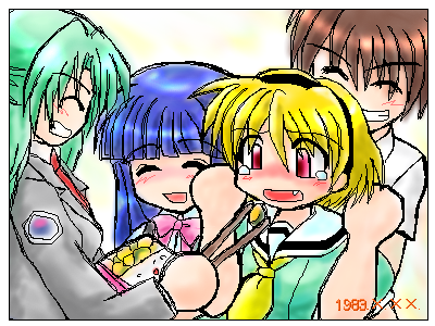 ↑圭沙都・沙都っ子同士様やぬーぬーに何か突っ込みたいことがある方はお気軽にどうぞw 基本的に公式が一番力入れて描いてるかもです。 自サイトのは気楽に描きたいときにささーっと言う感じ(笑) 付属テキストが長いものだけ独立項目にして後はまとめてあります。 ・自サイト絵板(1〜6) ・自サイト絵板(7〜11) ・自サイト絵板(12〜16) ・自サイト絵板(17) ・自サイト絵板(勝手に一人赤坂さん祭…3枚だけだけど(笑) ・公式サイト絵板(1〜5) ・公式サイト絵板(6〜10) ・公式サイト絵板(11〜15) ・公式サイト絵板(16〜20) ・公式サイト絵板(21〜25) ・公式サイト絵板(26〜30) ・公式サイト絵板(31〜35) ・公式サイト絵板(36〜40) ・公式サイト絵板(41〜45) ・その他絵板(1〜5) ・その他絵板(6) ・一人圭沙都妄想街道突っ走ってごめんなさい(笑) ・ブタになっても知りませんことよー! ・決意(痛いので注意) ・Happy Happy Birthday!! (絵が大きいので別項目に) ・トラップ発動!!(笑) (HEELさんとの合作絵です♪) ・他の誰でもない君だから。 (清一さん作のひぐらしな20のお題参加絵でもあります) ・ほらほら、にーにー!とっても綺麗な夕焼けでしてよー! 基本的に本家絵板の絵の裏でこっそり動画遊びしていたもののGIFアニメ化です。 動画のときとはテンポ等、見え方は違ってきますが。 ・悟史くんの大冒険 ・悟史くんの大冒険リメイク〜気になるアイツはブロフラワー〜 ・ひぐらしのなく頃に〜魅動し編〜 ・沙都子支援です♪ ・ラストスパートっ!!!! ありがたくもぬーぬーが頂いたひぐらし絵です♪ ・ガントレットさんからの頂き物 ・清一さんからの頂き物 ・佐野清流さんからの頂き物 ぬーぬーが参加中のお題です。 ・ひぐらしな20のお題 ソウルブラザー清一さん製作の、多人数協力お題企画です。 (クリックすると清一さんのサイト1LDKのお題ページ飛びます) ぬーぬーは現在17番を消化いたしました♪ 答えてくださると嬉しいです♪ 構想はあるんだけど、永遠に準備中かもしれない……(待てい!) ひぐらしリンクです。 フリーなところにこっそりリンクの根をはりめぐらしつつあります……シャイなひっきー君なのでまだ報告に行けてないけど(行けよ!(笑) いや、いつかはちゃんとご挨拶に……っ! いえ、別に普通のリンクと何も違いはないのですが(笑) ソウルリンク(Yorkeさん命名w)という言葉がなんかカッコよくて使ってみたかったのです(笑) このサイトで使用している『ひぐらしのなく頃に』のアイコンは、竜騎士07さん認可の元、 『07th Storming Party』より転用しています。 どれも全て配付・転載を禁止いたします。 ![]()