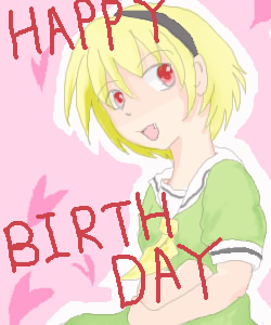 | マイソウルブラザー清一さんより誕生日祝いにいただきましたv 沙都子に祝ってもらえるなんて至上の喜びっ!! っていうか背景のはハートマークつまり沙都子の私への愛ですn…ッ!? ガコン!プス!!!ザク!!!どかーん!!!(トラップコンボ) 沙都子「そんなわけございませんですことよー!!ハートマークではなくぬーぬーさんの誕生花である桜を清一さんがわざわざ描いて下さったのですわ!!目が腐るのもたいがいになさいませ!!」 わかってるさ沙都子…それでも…夢が見たかったんだ…ぱた(笑) |