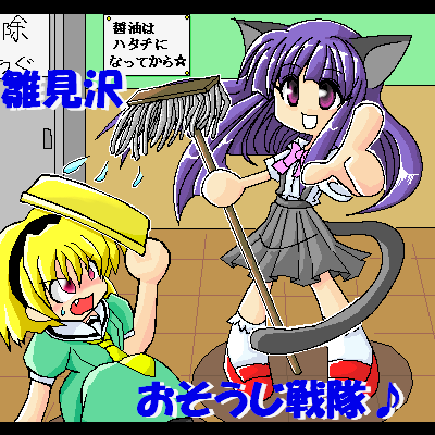 梨花「雛見沢の闇はボクたちがおそうじしてみせるのですよ☆」 沙都子「その前にモップをちゃんと絞ってくださいまし、梨花ぁー!!!」 雛見沢トラップ部隊による初の共同トラップ(合作絵のこと)です(笑) 「トラップは最後に一つ!」をモットーにぬーぬーが後攻、HEELさんが先攻をつとめましたw ちなみに言うまでもないですが、右の素敵梨花ちゃんがHEELさん、左の沙都子&背景がぬーぬーです。 二人とも罪滅ぼし編の影響を如実に受けております(笑) こういう形での合作絵はひぐらしに限らず生まれて初めてだったのですが、とってもとっても楽しかったです♪ 雛見沢トラップ部隊は永遠に不滅!! また遊びましょうね、鉛筆師匠♪(笑) |