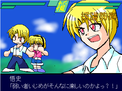 北条悟史 初期特殊技能:にーにーLv7 沙都子援護時、または沙都子ピンチ時に全てのパラメータがUPする。 第二次スーパー雛見沢大戦(笑) これはさすがに調子に乗りすぎたかな? ひぐらし板だけに元ネタわからない人多数でした。 台詞から悟史と詩音の対決を心配する方がいたのでCP人気投票対決のイメージで↓のようなレスをば(笑) 悟史「弱いものいじめがそんなに楽しいのかよっ!!」 詩音「何を言っちゃってるんですか、悟史君。 沙都子を負かせてるのは私と悟史君なんですよ?」 悟史「……む、むぅ」 沙都子「ちょっと詩音さん!にーにーを誘惑しないで下さいまし!梨花ぁ!!!」 梨花「呼ばれて飛び出て、なのですよ〜☆」 (以下超級覇王沙都子弾発動、回避。人気投票時の画像参照(笑)) 沙都子「そ、そんなぁ!外れるなんて……ふぁあぁぁぁん、にーにー!!にーにー!!(涙)」 悟史「沙都子!?……詩音、僕は……」 詩音「……はぁ、やれやれ、です」 魅音「おろ?どーしたの、詩音。下がっちゃって。レナに抜かれちゃうよ?」 詩音「いーんです。お姉はとっとと行っちゃってください」 悟史「……ありがとう、詩音。ほら、沙都子、これで隣だ。僕も詩音も側にいるよ」 なんて、ね(笑) |