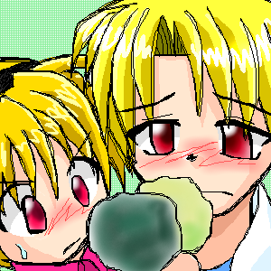 | さーとしーのうーたがー♪ きーこーえーてーくーるーよー♪ むぅ。むぅ。むぅ。むぅ。 一体 どっちが カリフラワー? (※かえるの歌のメロディで歌ってください) むぅむぅの日、一番乗り絵ですー(笑) むぅむぅの日という事で一緒に沙都子もむぅ。です(笑) ……ってか。 悟史くん+むぅ=ブロッコリー しか真っ先に思い浮かばない私は間違っているのでしょうか(笑) カリフラワとブロッコリは描けないので色で判断してください(をい) それにしても……塗り残しやはみ出し部分に今頃気づいて少しショックです……むぅ。 ↑の歌は描いてる時なんとなく口ずさんでたものだったんですが、なんか好評でした(笑) |